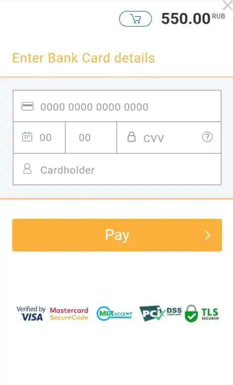 - 7. Ввести данные кошелька и подтвердить платеж.